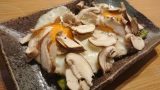 3.もりつけて、スライスしたマッシュルームをちらして完成。