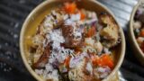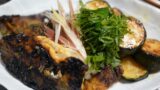 2.素揚げした野菜にバルサミコ酢をたっぷりかけ、軽く砂糖も加えてフライパンで加熱して絡めたのち、器に盛ってしばらく寝かせたら盛り付けて完成。