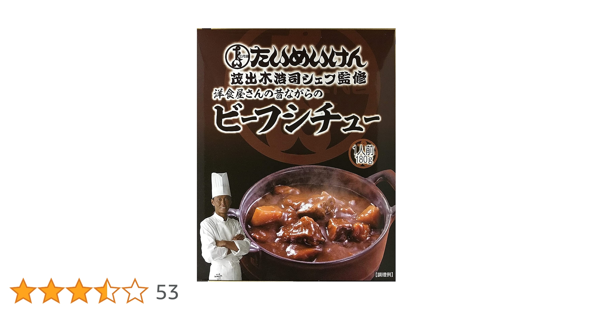 昭和6年創業の老舗洋食店「たいめいけん」三代目茂出木浩司シェフ監修商品。洋食屋さんのデミグラスを使用した、懐かしい味わいのビーフシチューです。本格的な洋食のあじを、あっというまにお楽しみいただけます。レトルトですので保存にも優れ、急な来客や...