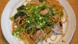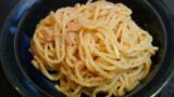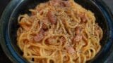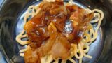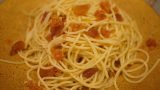 これ、ポイントはスパゲッティを茹でるときの塩分だと思う。ちゃんと塩味が乗ってないと、味がぼやける。ここがご飯でやる時と違うとろこかなぁと思う。