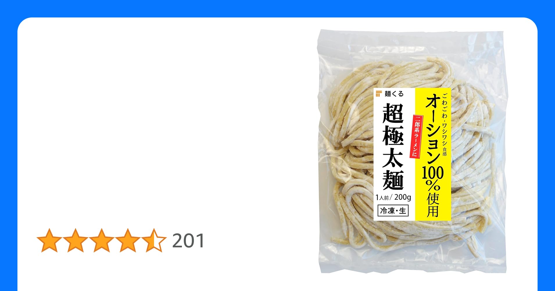 二郎系 超極太 オーション生麺(200g 冷凍)ラーメン つけ麺 [ごわごわ・ワシワシ食感] 麺くる (麺のみ, 12食)