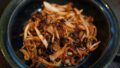 3.別の鍋に1と2と水と日本酒を加えて煮る。途中で醤油を加え、だいたい弱火で2時間煮る。その後、火を切って寝かせ、食べる時に再度温めて、皿に盛って完成。